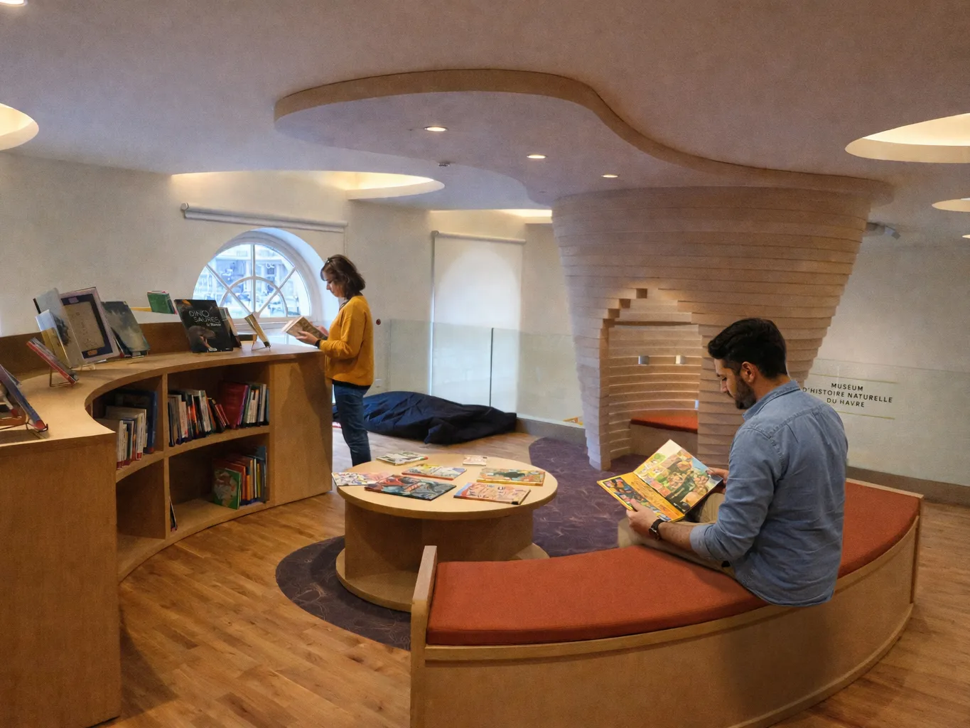 On peut y patienter avant une animation, bouquiner seul ou en groupe, se reposer un instant ou laisser libre cours à son imagination. Ce lieu incarne l’esprit convivial et chaleureux du Muséum : un espace vivant, ouvert, pensé pour toutes les curiosités.