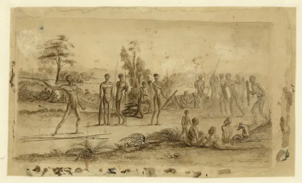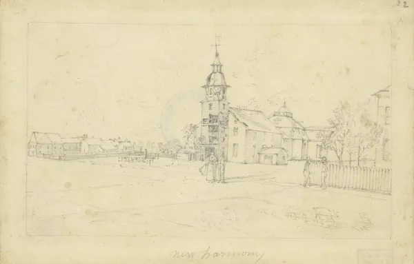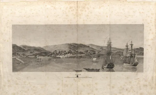 Île de la Barbade (Antilles), C.-A. Lesueur, 1816 - Lorsque Lesueur et Maclure font escale aux Antilles fin décembre 1815, Lesueur dessine des plantations : on y reconnaît des esclaves noirs. Les bords de mer sont un lieu de collecte d’animaux marins