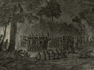 « Quant aux naturels qui habitent cette partie de la Nouvelle-Hollande, nous ne pouvons en offrir à nos lecteurs des détails bien circonstanciés n’ayant pas beaucoup communiqué avec les habitans. Néanmoins pendant le peu de tems que nous y avons séjourné, nous avons acquis la conviction qu’ils ne sont ni méchans ni à craindre »
