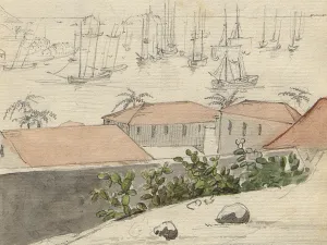 Lorsque Lesueur et Maclure font escale aux Antilles fin décembre 1815, Lesueur dessine des plantations : on y reconnaît des esclaves noirs. Les bords de mer constituent un lieu intense de collecte d’animaux marins et l’intérieur des terres dévoile des roches volcaniques et basaltiques.