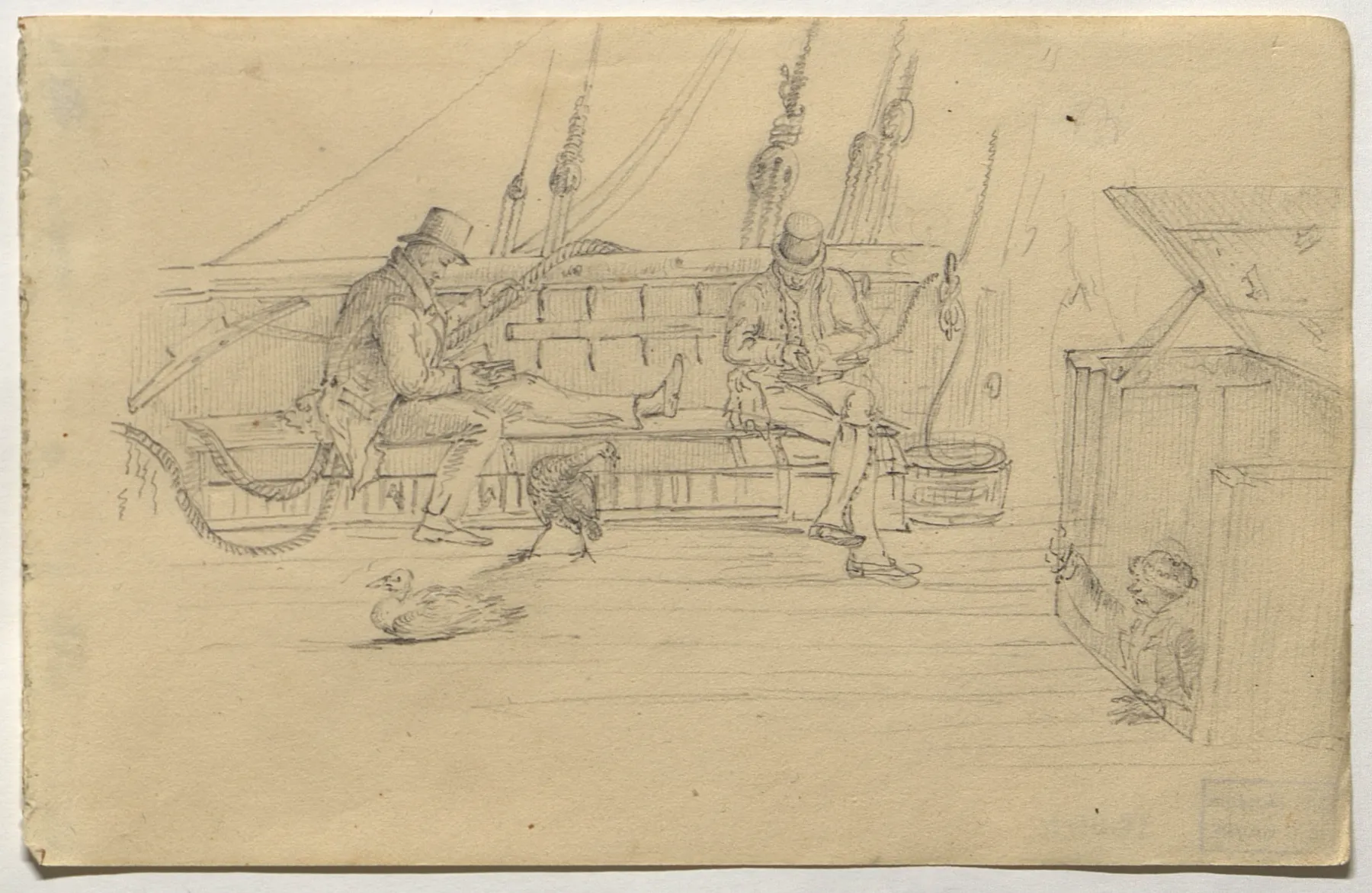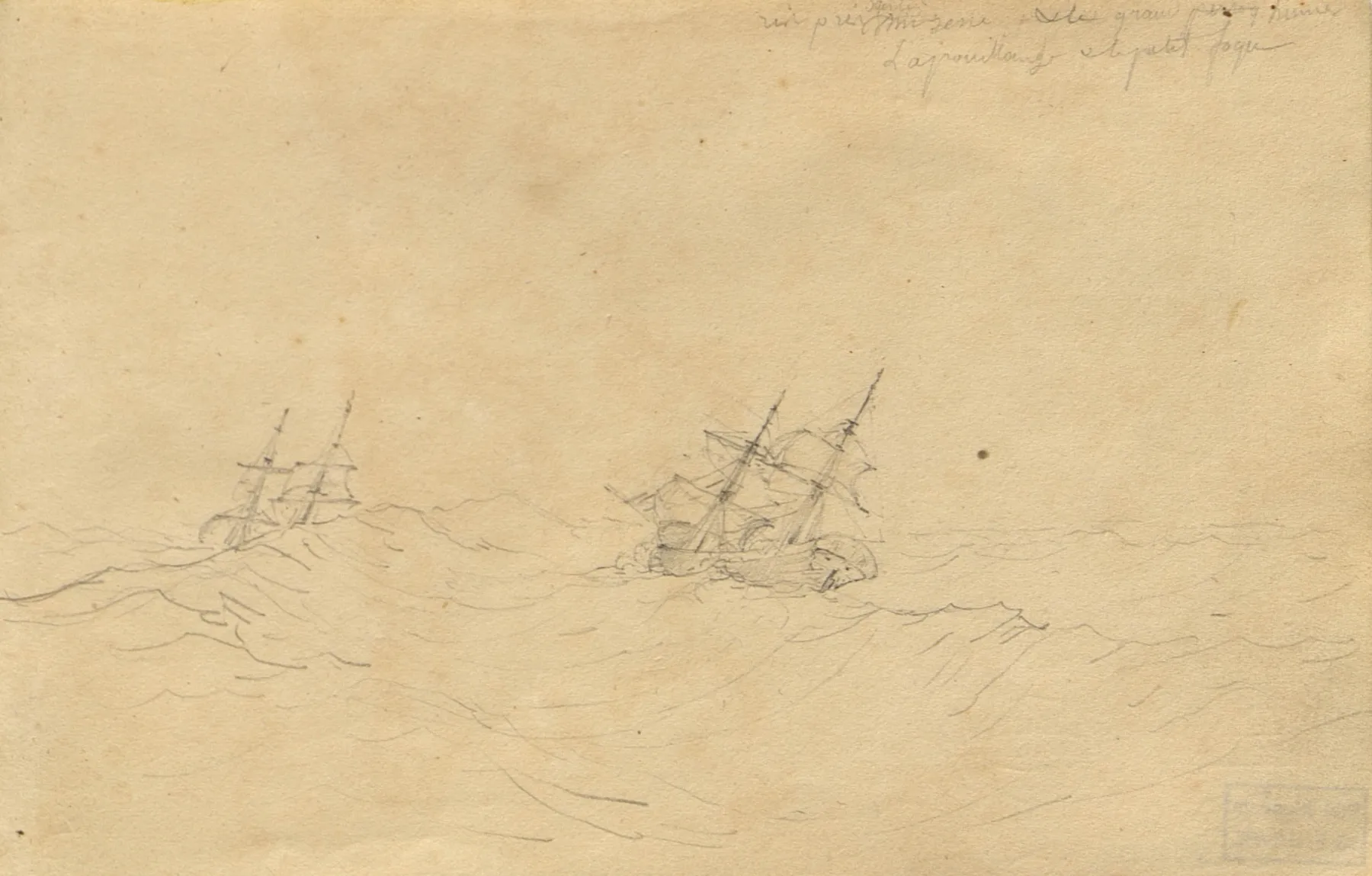 Dessins et courriers de Lesueur évoquent la traversée de l'Atlantique, vers les Antilles, en 1815.