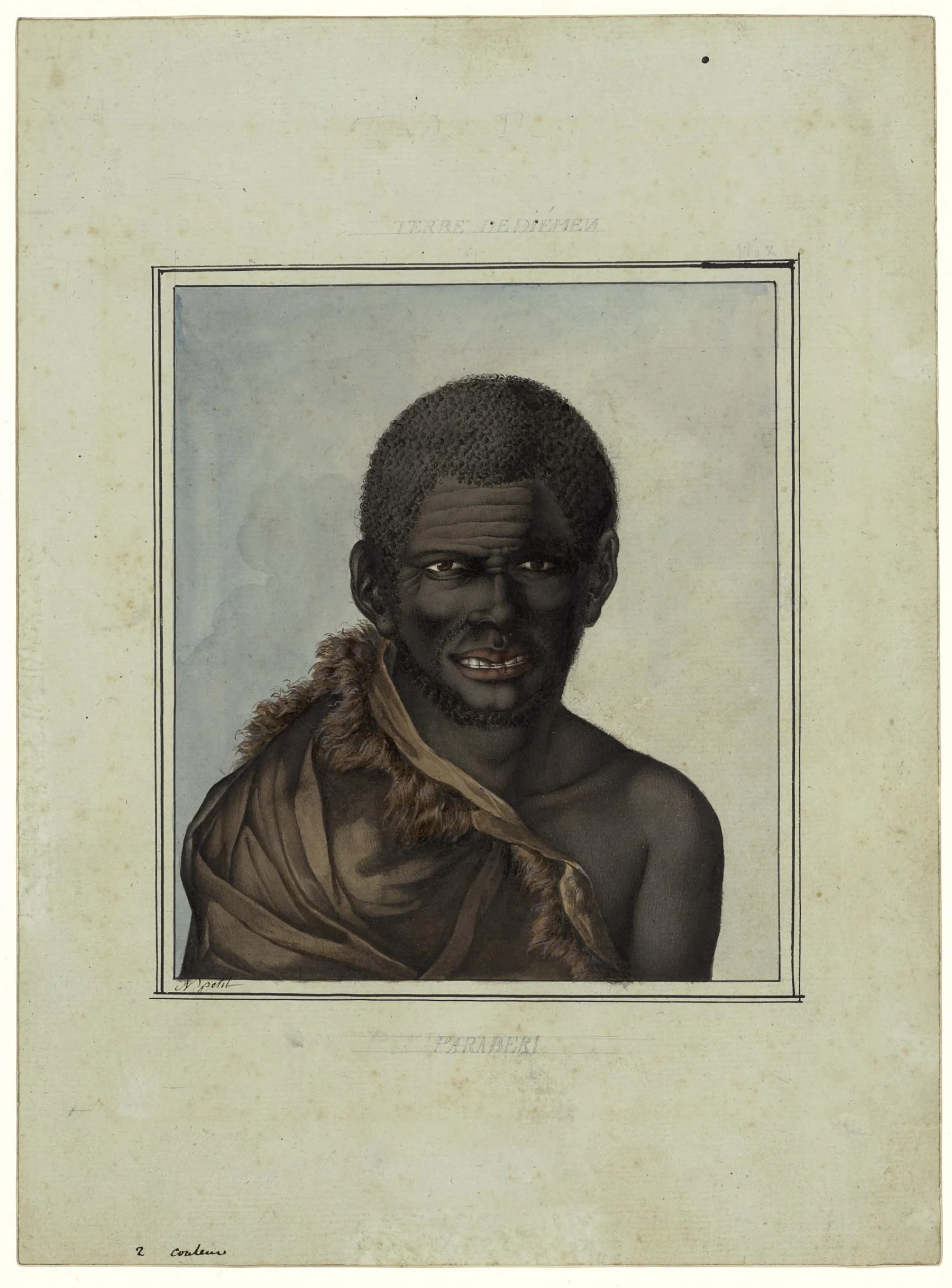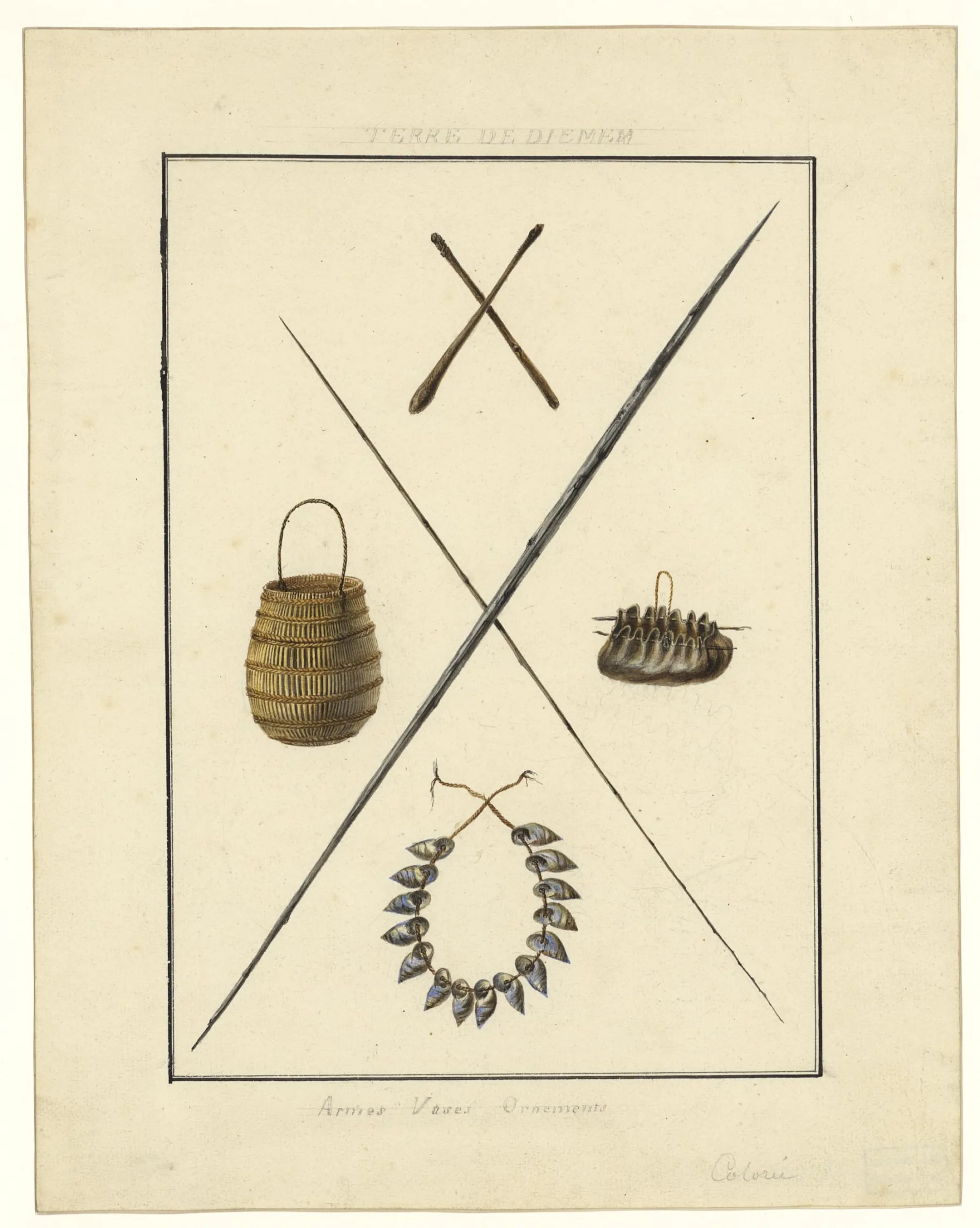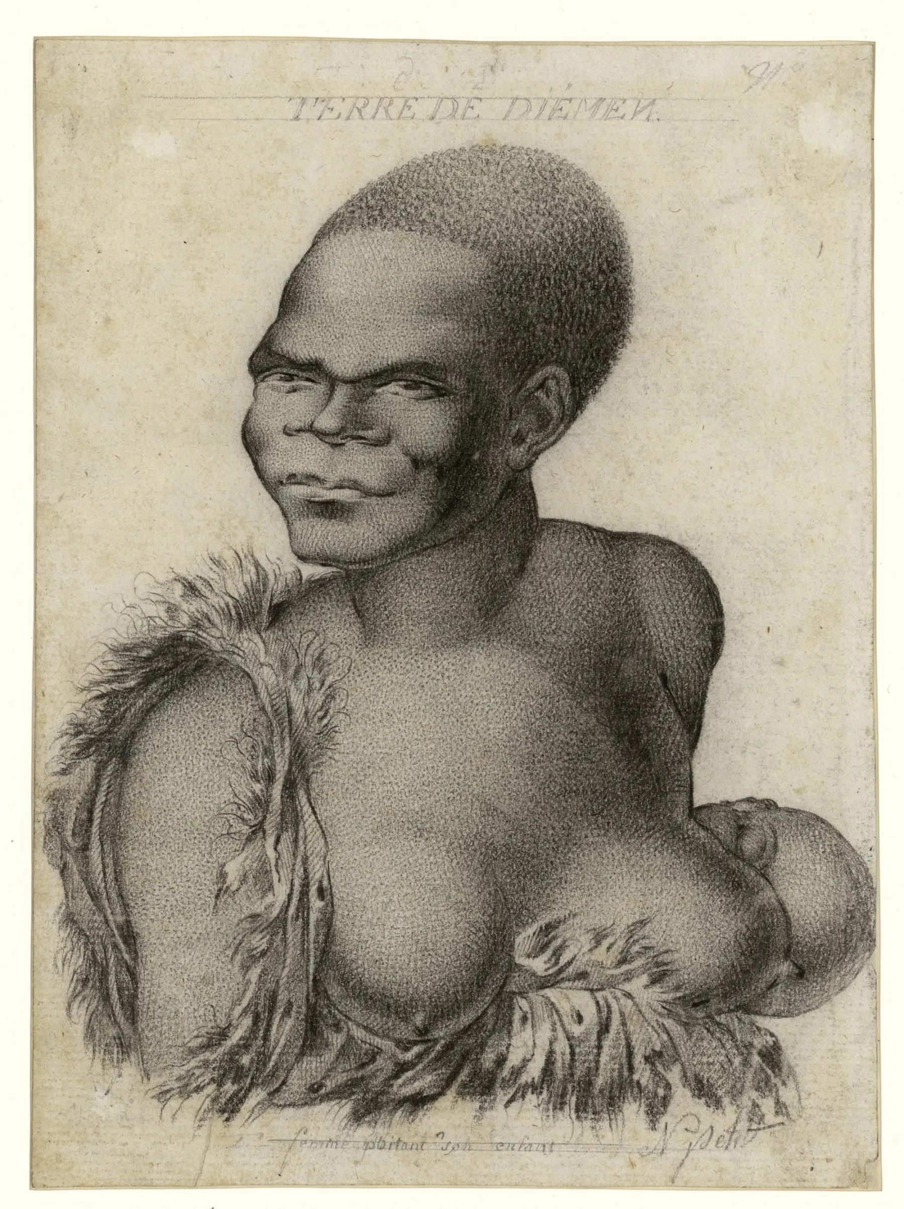 « Dans toutes les circonstances où nous avons rencontré des femmes, nous avons remarqué qu’elles ne manquaient jamais de se retirer à l’écart, pour faire leur toilette, qui consiste à piler du charbon et à s’embarbouiller leur figure avec leur salive. Si ces belles dames avaient consulté notre goût, il est probable qu’elles se seraient dispensées de faire tant de frais pour nous plaire. D’après un usage aussi bizarre, l’on voit que les nouveaux hollandais attachent une idée singulière à la beauté des femmes : Vénus de ce pays  tient, sans doute, sa cour, dans quelques mines de charbon. »