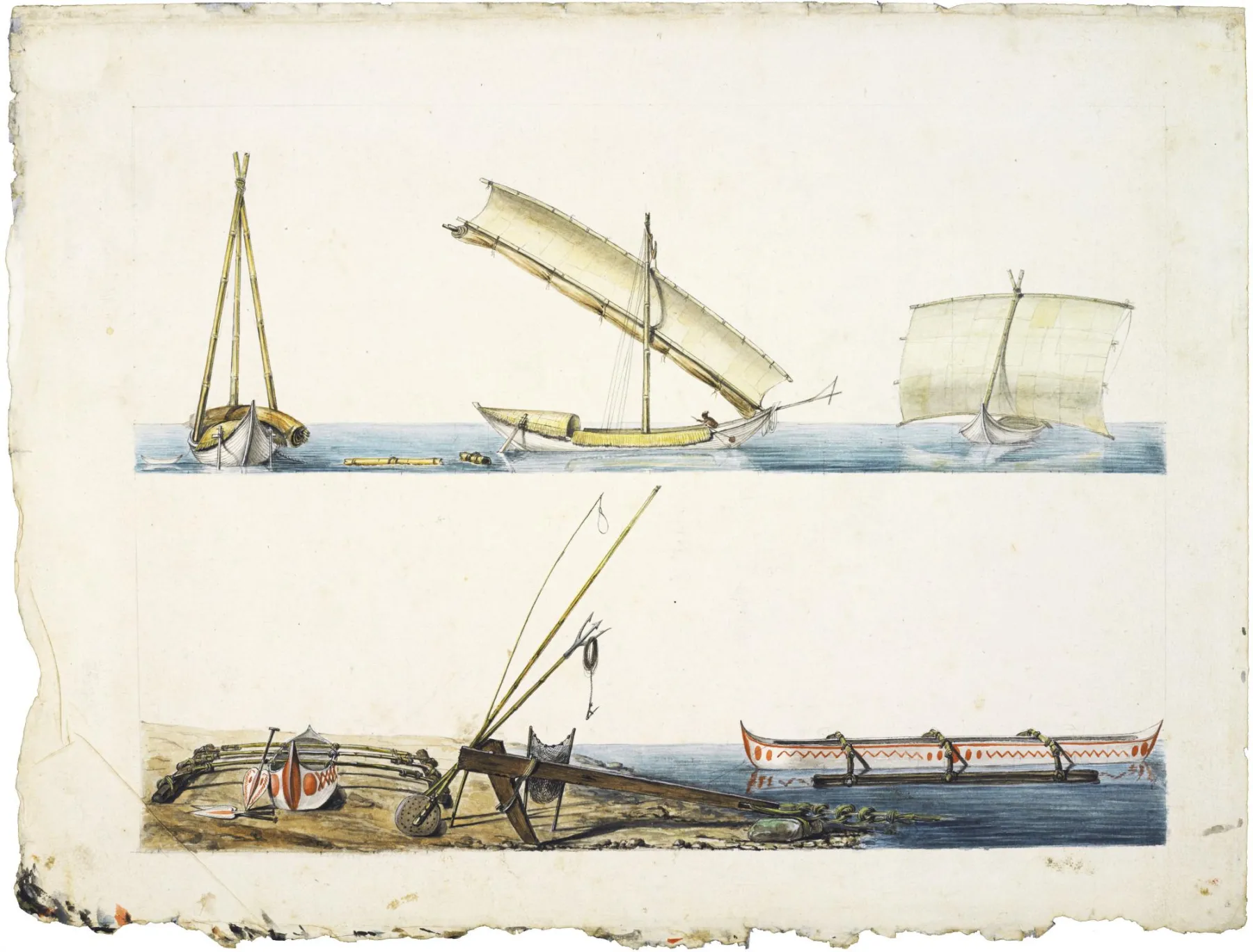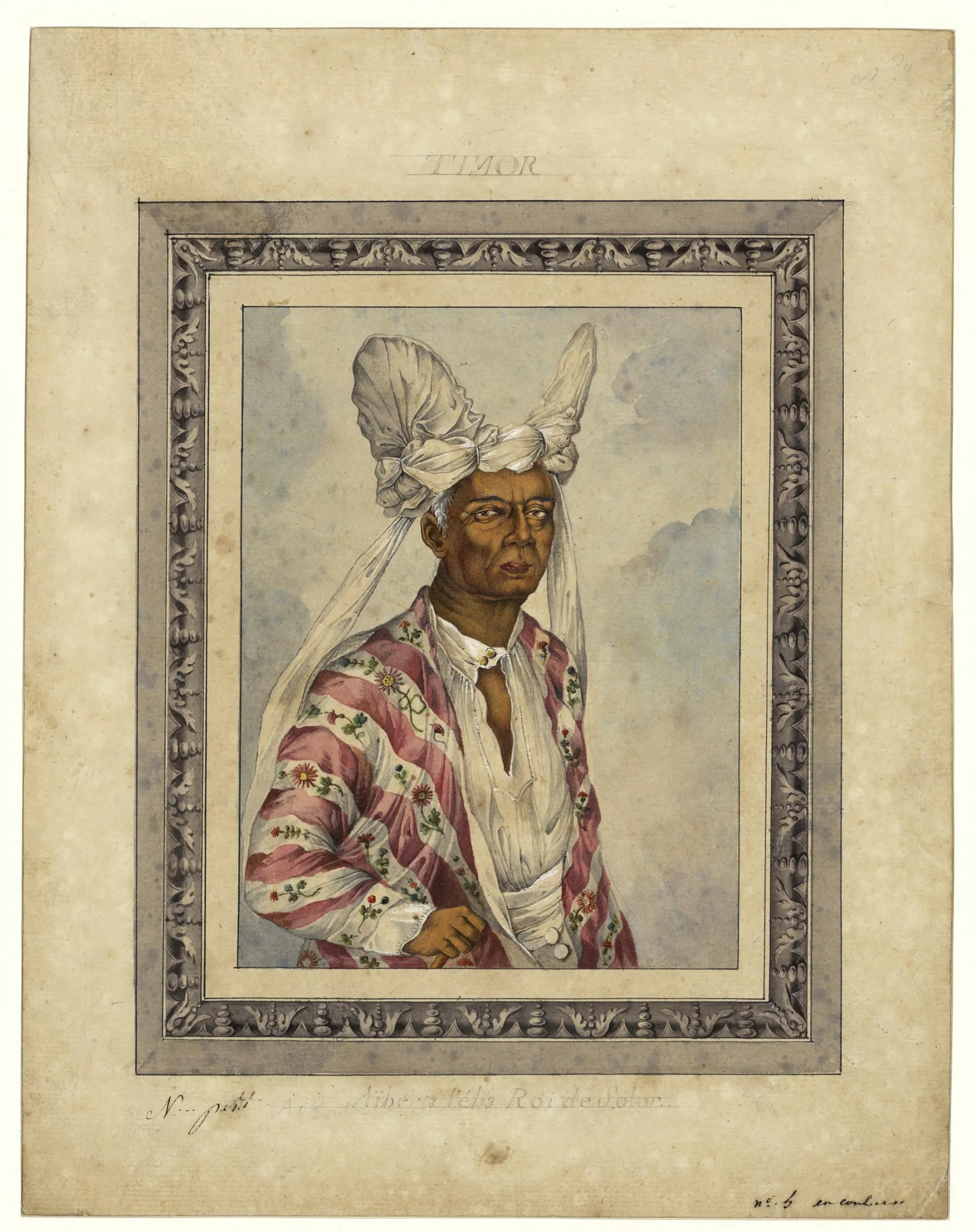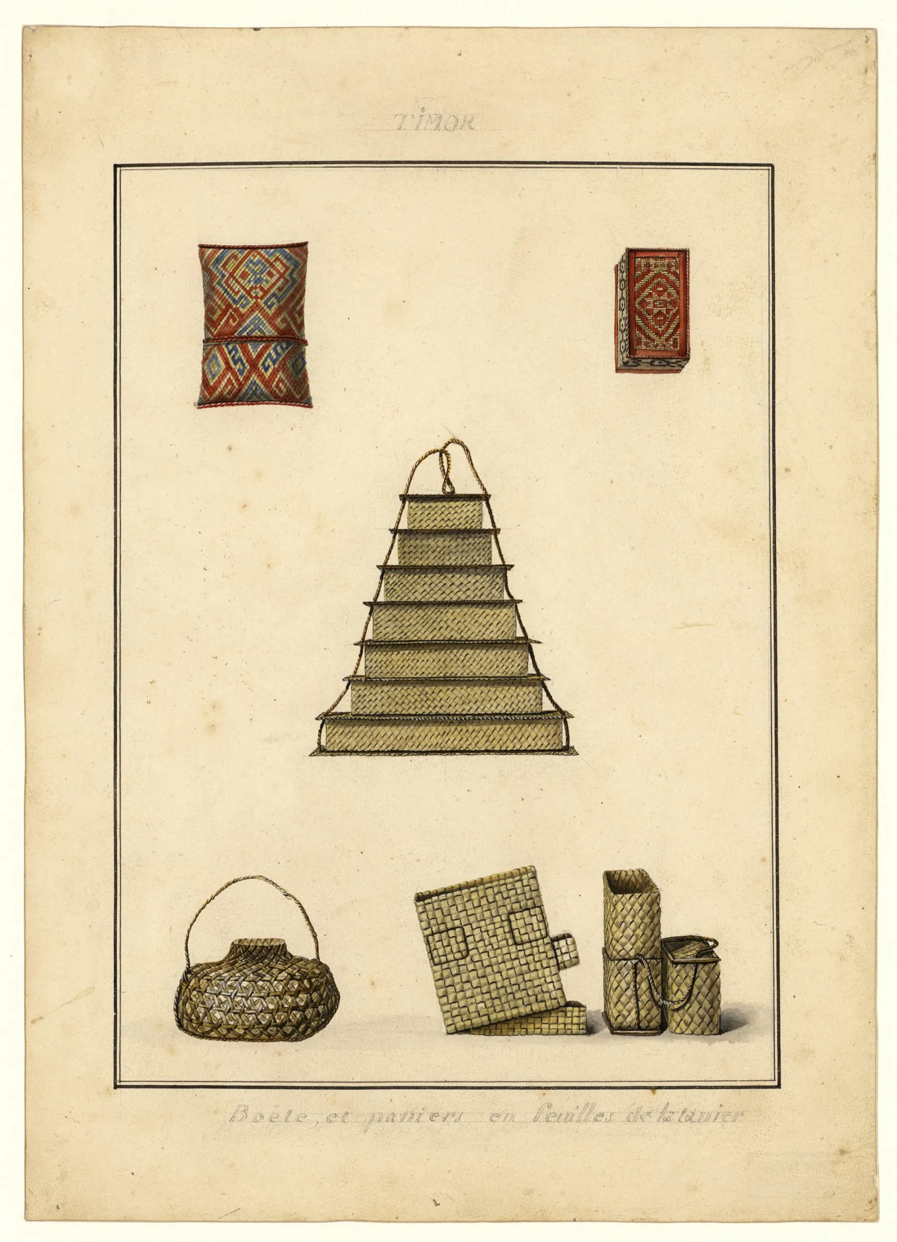 Août-novembre 1801. La relâche à Timor est longue, dictée par le mauvais état des bateaux et la santé chancelante des hommes. L’expédition est bien accueillie par le gouverneur hollandais à la Baie de Coupang, une ville peu étendue. La nature généreuse contraste avec les côtes occidentales australiennes. Mais le climat humide est difficile à supporter, le scorbut et la dysenterie continuent de faire rage. Baudin montre les premiers signes de la tuberculose (dont il mourra sur le chemin du retour en 1803) et le botaniste Riedlé meurt en octobre. Constatant l’intérêt des naturalistes pour les espèces nouvelles, des Timoriens apportent régulièrement des animaux en échange de petits objets : épingles et perles. Péron accumule les récoltes de mollusques et zoophytes et multiplie les contacts avec les Naturels que Petit dessine.