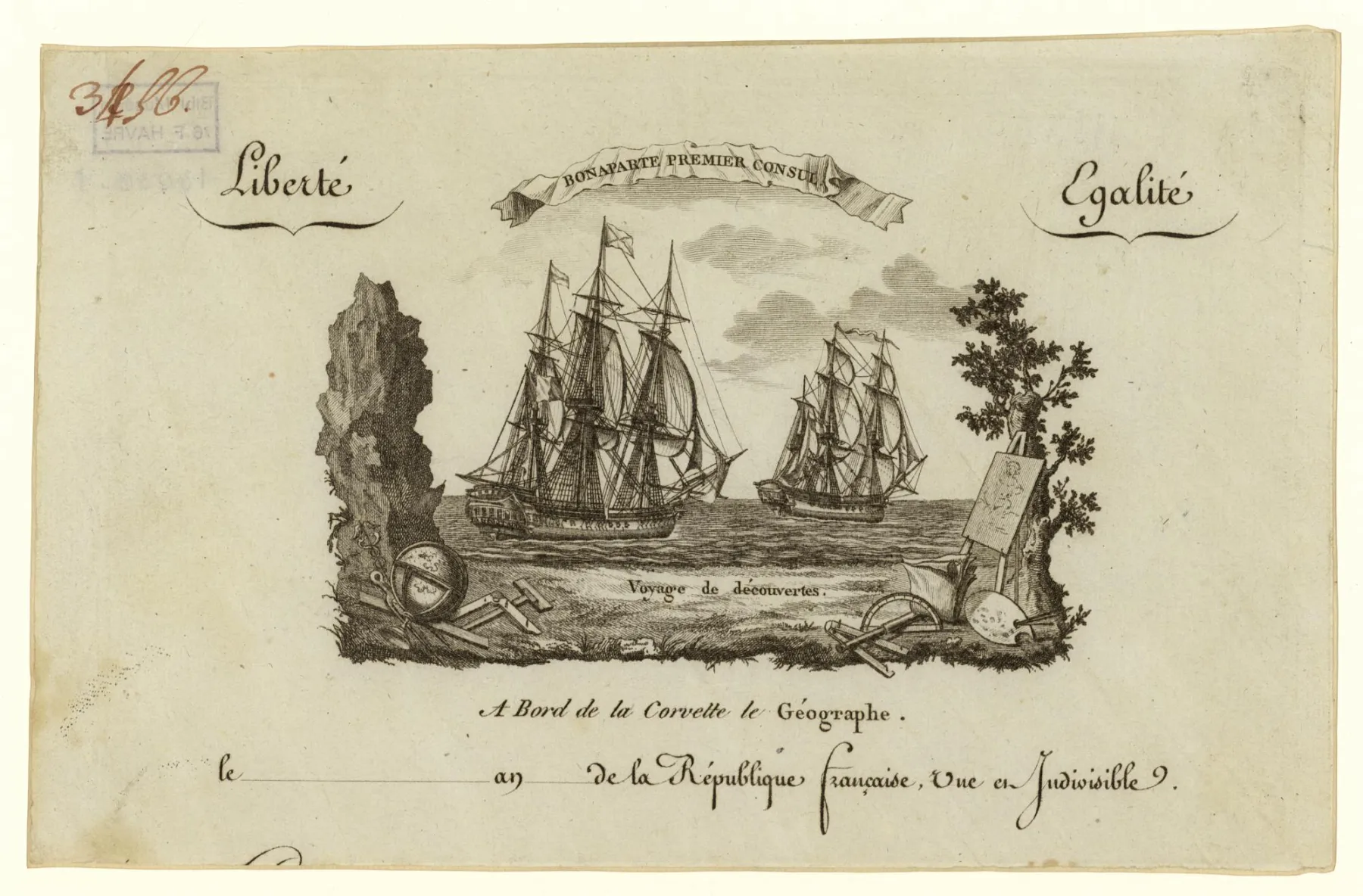 En octobre 1800, le Géographe et le Naturaliste quittent le port du Havre avec à leur bord un équipage de deux cents hommes dont une vingtaine de savants. Leur destination est l’Australie (alors appelée Nouvelle-Hollande).