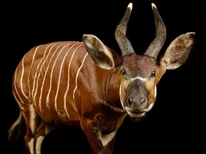 En 2007, on ne comptait plus qu’une centaine de Bongos des montagnes ! Protégé depuis, on le trouve dans quelques parcs zoologiques, malgré les difficultés de maintien de l’espèce en captivité.