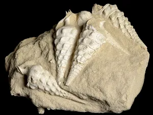 Les carrières du Cotentin ont livré par le passé une riche faune du Tertiaire. Avec la fermeture des carrières ces dernières décennies, ces couches sont peu à peu devenues inaccessibles. Datant de l’Eocene, ce remarquable ensemble de cinq Campanile estimé d’environ 55 millions d’années a été donné à la Ville du Havre par Olivier Gain. Ce paléontologue étudie et fouille tous les ans, à la recherche de ces coquillages Tertiaire.