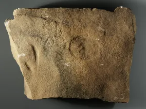 Le Muséum d’histoire naturelle du Havre compte parmi ses collections deux spécimens provenant d’Ediacara. A la surface d’un petit bloc de grés, on distingue une empreinte ovalaire peu profonde de 3 cm de diamètre avec une structure radiée. Cette espèce appelé Dickinsonia costata est la plus courante sur le site d’Ediacara. On sait que Dickinsonia est un organisme capable de se déplacer puisque des pistes de déplacements fossiles ont été retrouvées. En revanche sa classification est incertaine et plusieurs théories s’affrontent. Il pourrait s’agir d’un annélide (famille des vers) mais aucun critère ne permet d’en être complètement sûr.
