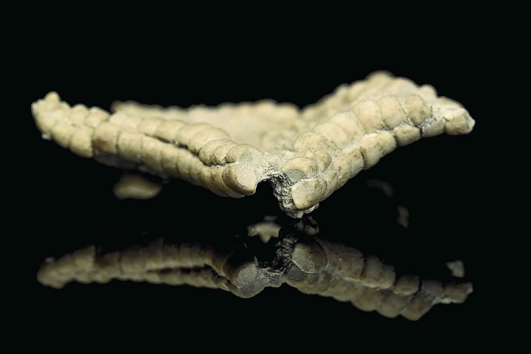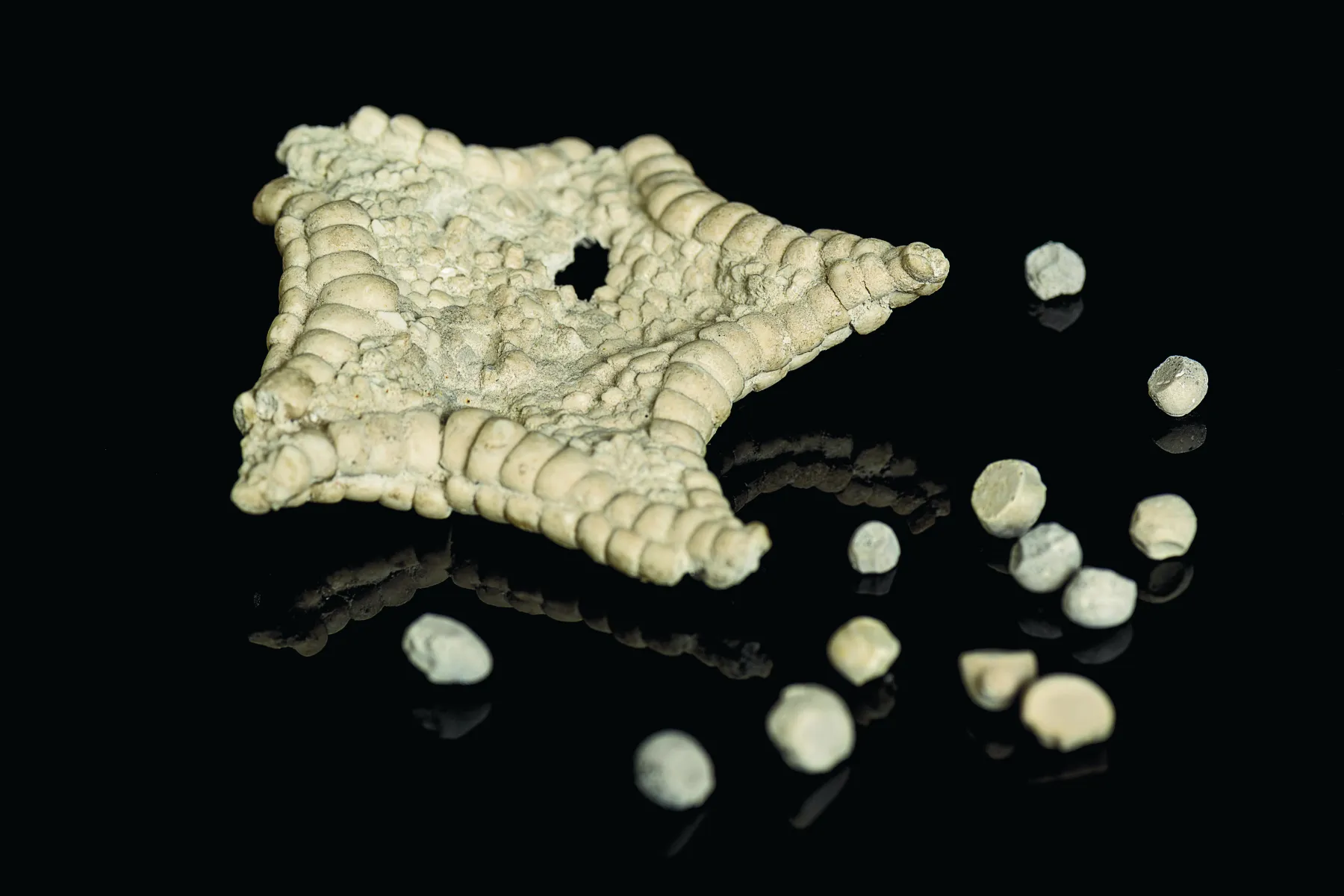 Le corps des étoiles de mer est constitué d'une multitude de petits éléments appelés ossicules. Après la mort de l'animal, ces éléments ne sont plus retenus entre eux que par la partie organique de l'animal. Les ossicules fossiles sont courants, mais retrouver un spécimen aussi complet que celui-ci est extrêmement rare.