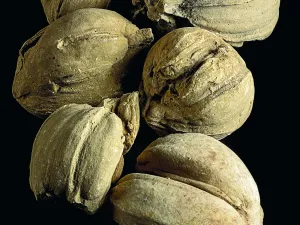 Ces fruits fossiles proviendraient d’un palmier qui poussait en bordure de rivières influencées par la marée. De la taille d’une noix de coco, ces fossiles rares nous informent sur le climat chaud et humide qui régnait à l’époque en France.