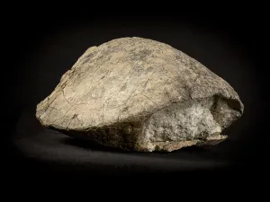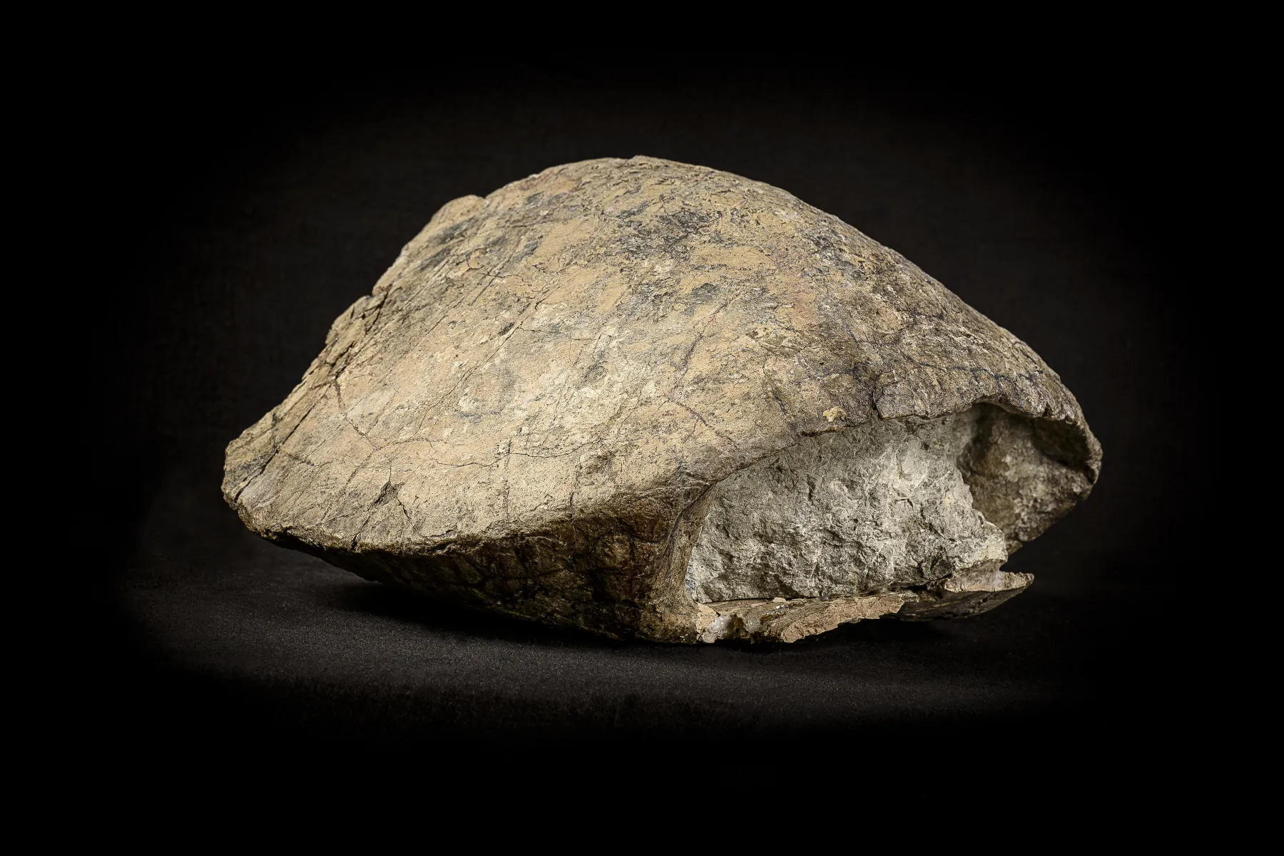 Cette carapace date d'environ -155 millions d'années et provient du Cap de la Hève, près du Havre. Les carapaces complètes comme celle-ci sont extrêmement rares. La carapace des tortues est constituée de côtes qui, au cours de l'évolution, se sont élargies et soudées entre elles. Il est donc parfaitement impossible pour une tortue de "sortir" de sa carapace.