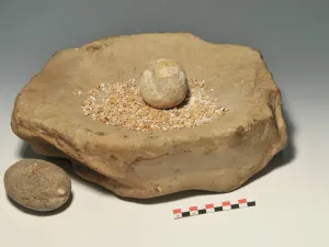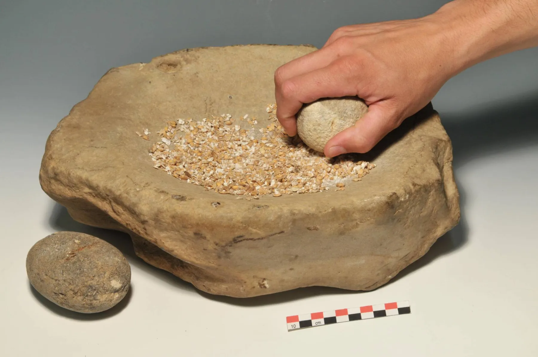 Durant la préhistoire, les activités de mouture des graines nécessitent une meule dormante sur laquelle on écrase les grains par un mouvement rotatif ou de va-et-vient, à l’aide d’une pierre plus petite.