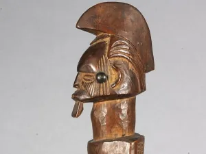 Une statue qui protège de la mort ? Selon les rites de l’ethnie Téké, cette statuette possède, entre autres, le pouvoir d’écarter du village la maladie et la mort. Seul le devin (appelé nganga) connait les formules qui donne à ces statuettes leur pouvoir magique.