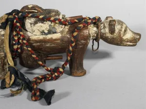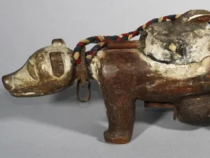 Un chien magique ? Lors de certaines cérémonies, le devin guérisseur introduisait à l’intérieur de cette statuette de chien des charges magiques (dents, graines, poils,…). La statuette devait ainsi permettre à son propriétaire de conserver sa bonne santé et de résoudre ses problèmes.