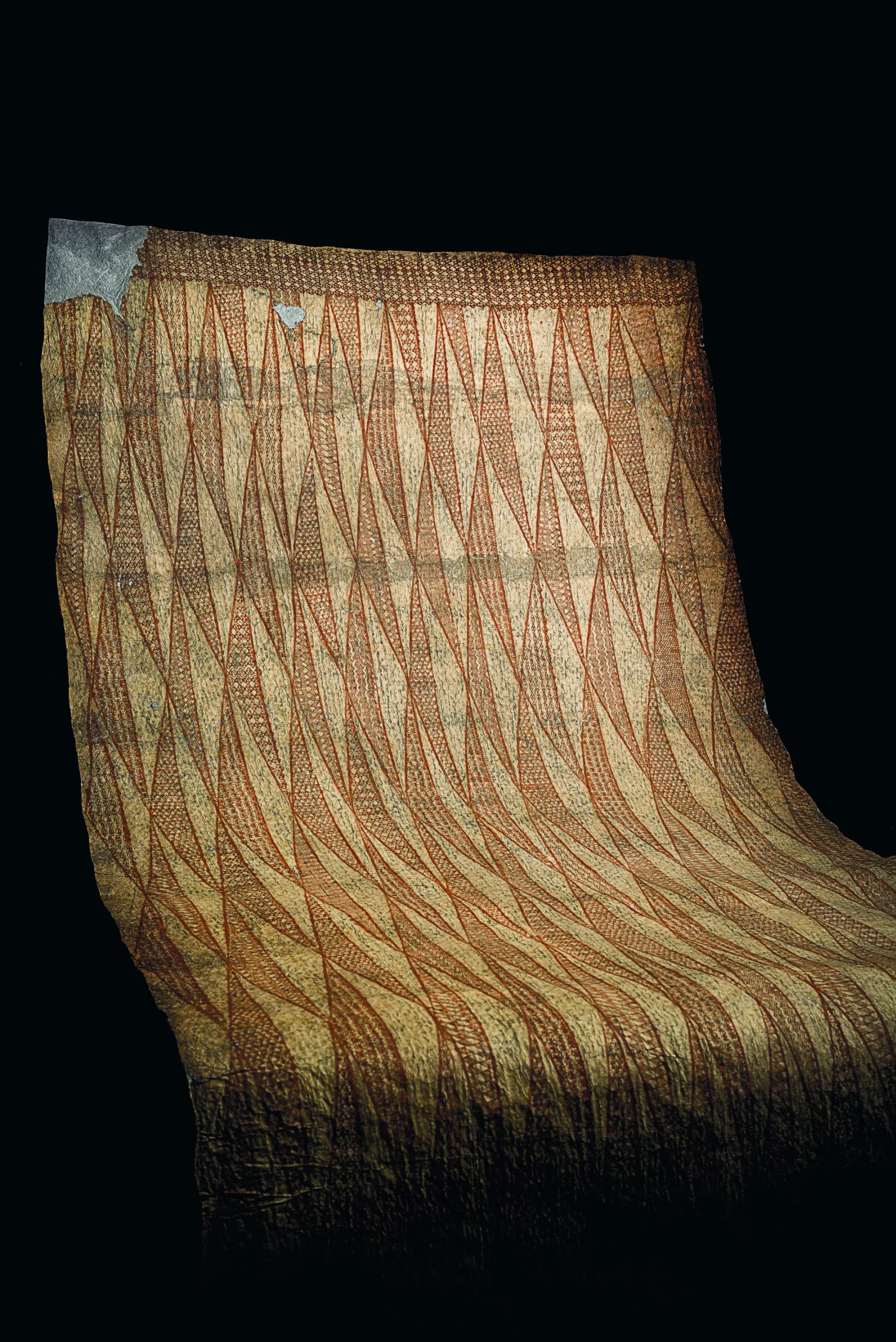Étoffe d’écorce, le tapa est présent dans presque tout le Pacifique. Si actuellement peu d’informations précises ont pu être associées à celui-ci, sa taille impressionnante et son décor soigné en font probablement un tapa de cérémonie.