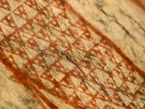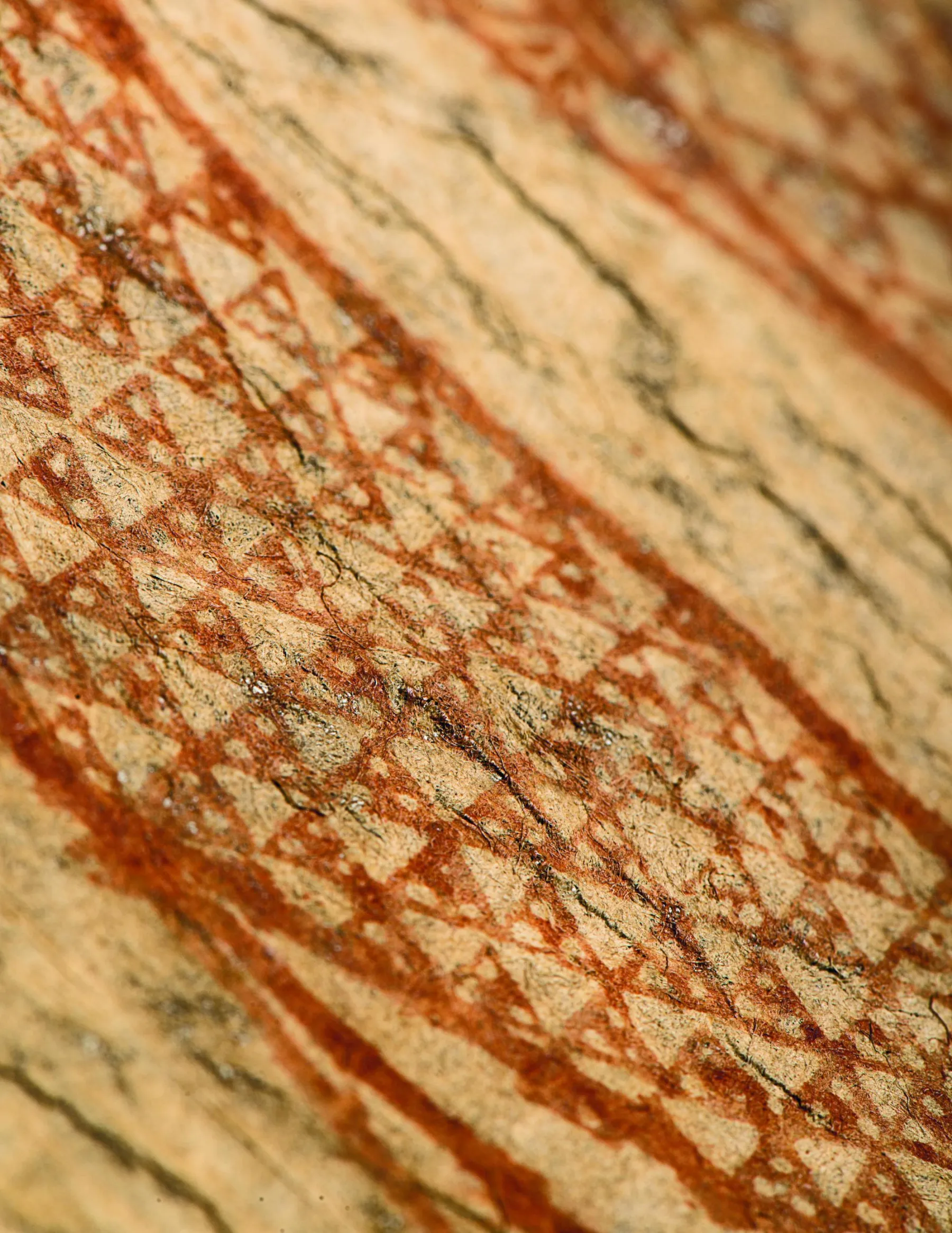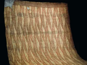 - Matériaux : étoffe d’écorce battue recouverte de pigments