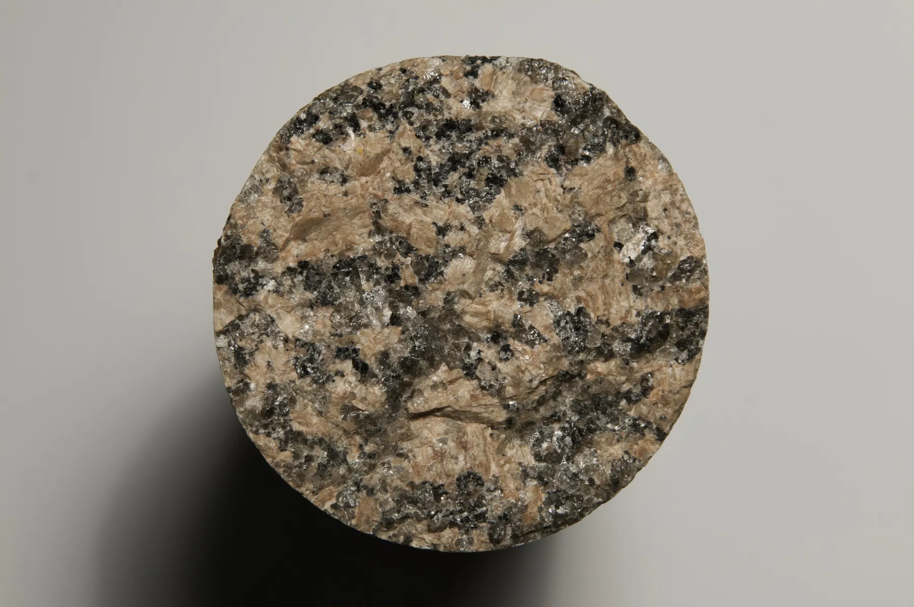 Lorsque l'on observe un morceau de granite à l’œil nu, on remarque plusieurs minéraux : blancs, roses, noirs... Le granite est en effet une roche magmatique plutonique, c'est-à-dire qu'il provient d'un magma refroidi en profondeur. Le granite est en général composé de 3 minéraux caractéristiques : du quartz, des feldspaths et des micas. Plus le refroidissement d'un magma est lent, plus la taille des minéraux composant le granite est importante. Ainsi, un granite avec des minéraux de taille plus importante aura cristallisée plus lentement qu'un granite à petits minéraux. Les érosions successives des couches supérieures permettent d’observer en surface les roches de granite pourtant formées en profondeur.