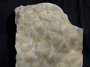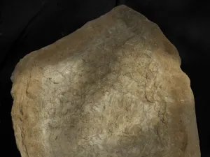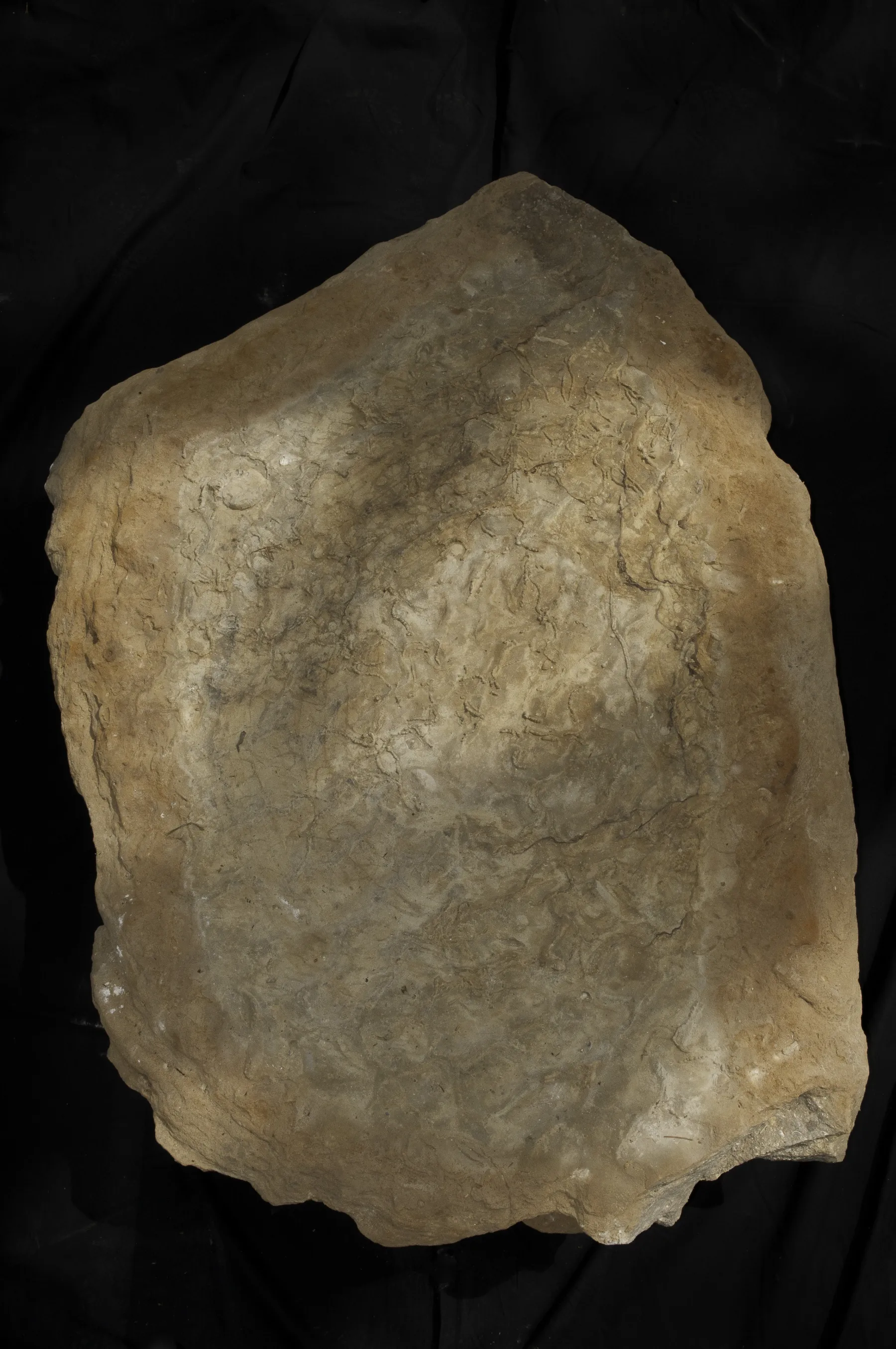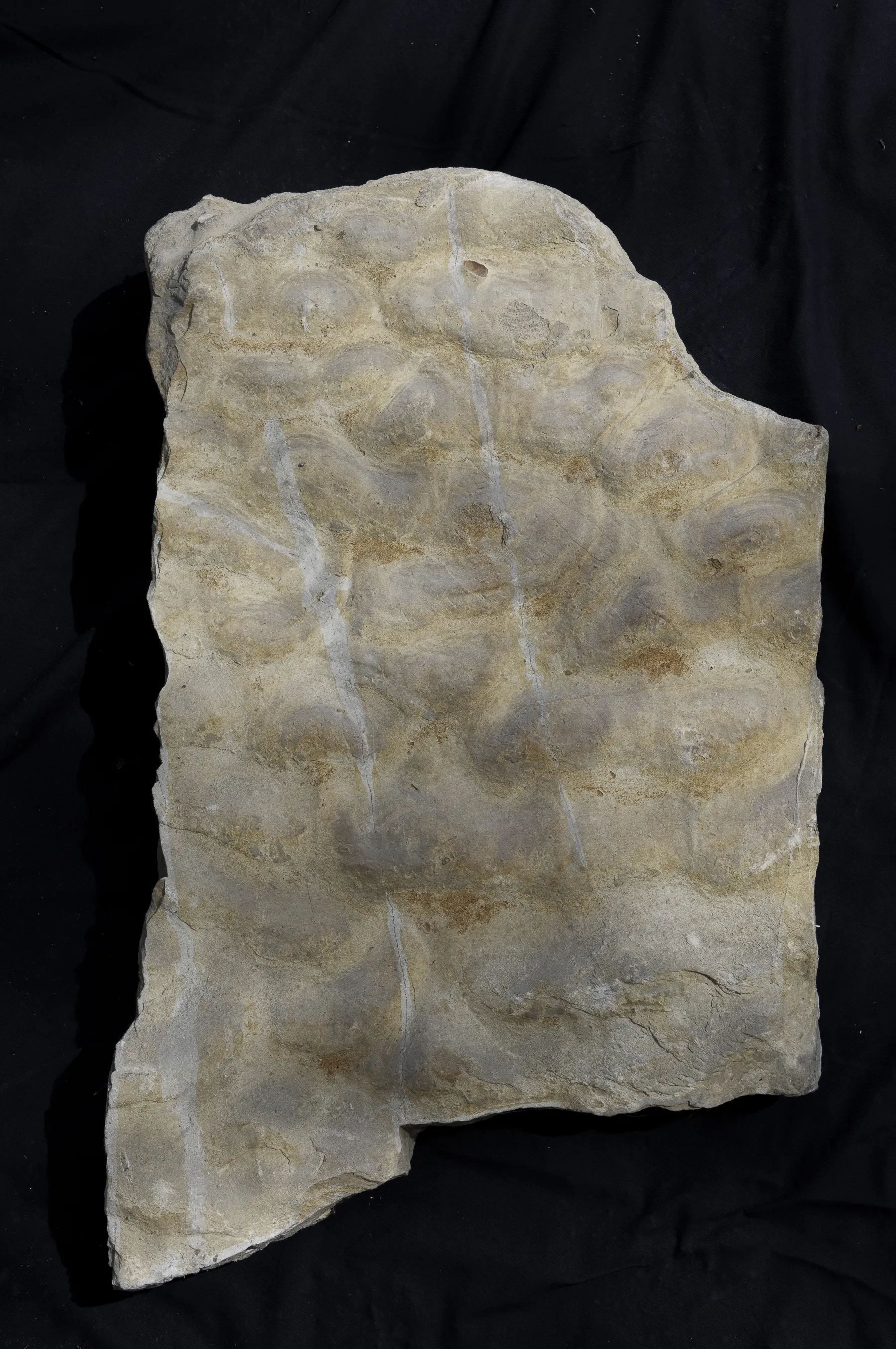 Cet échantillon appelé Ripplemark peut se traduire par « ride de plage ». Il s’agit d’un fond sablonneux d’une mer peu profonde d’époque oxfordienne qui a été « fossilisé ». Au cours du temps ce fond marin a été recouvert par d’autres couches qui ont protégé ce témoignage du mouvement des vagues. Découvert dans le Calvados, on peut supposer que le sable constituant ce grès provient de l’érosion de la chaîne hercynienne (montagne à l’emplacement de la Bretagne).