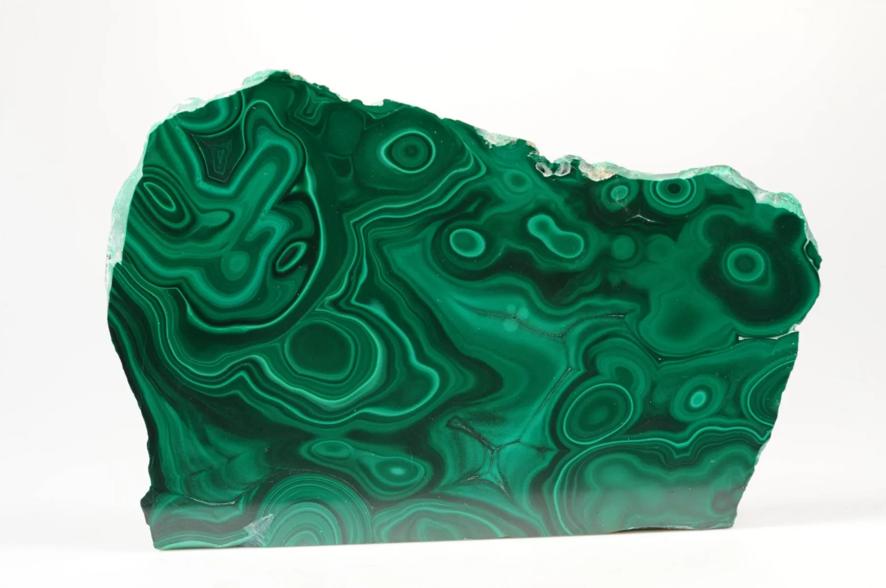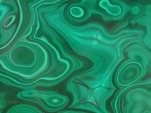 C’est le plus répandu des minéraux issus de la transformation du cuivre, il est souvent associé à l’azurite. Il se présente sous forme mamelonnée en surface, avec des alternances de teintes de vert à l’intérieur. Sa couleur varie du bleu-vert au vert sombre, en passant par le vert jaunâtre.