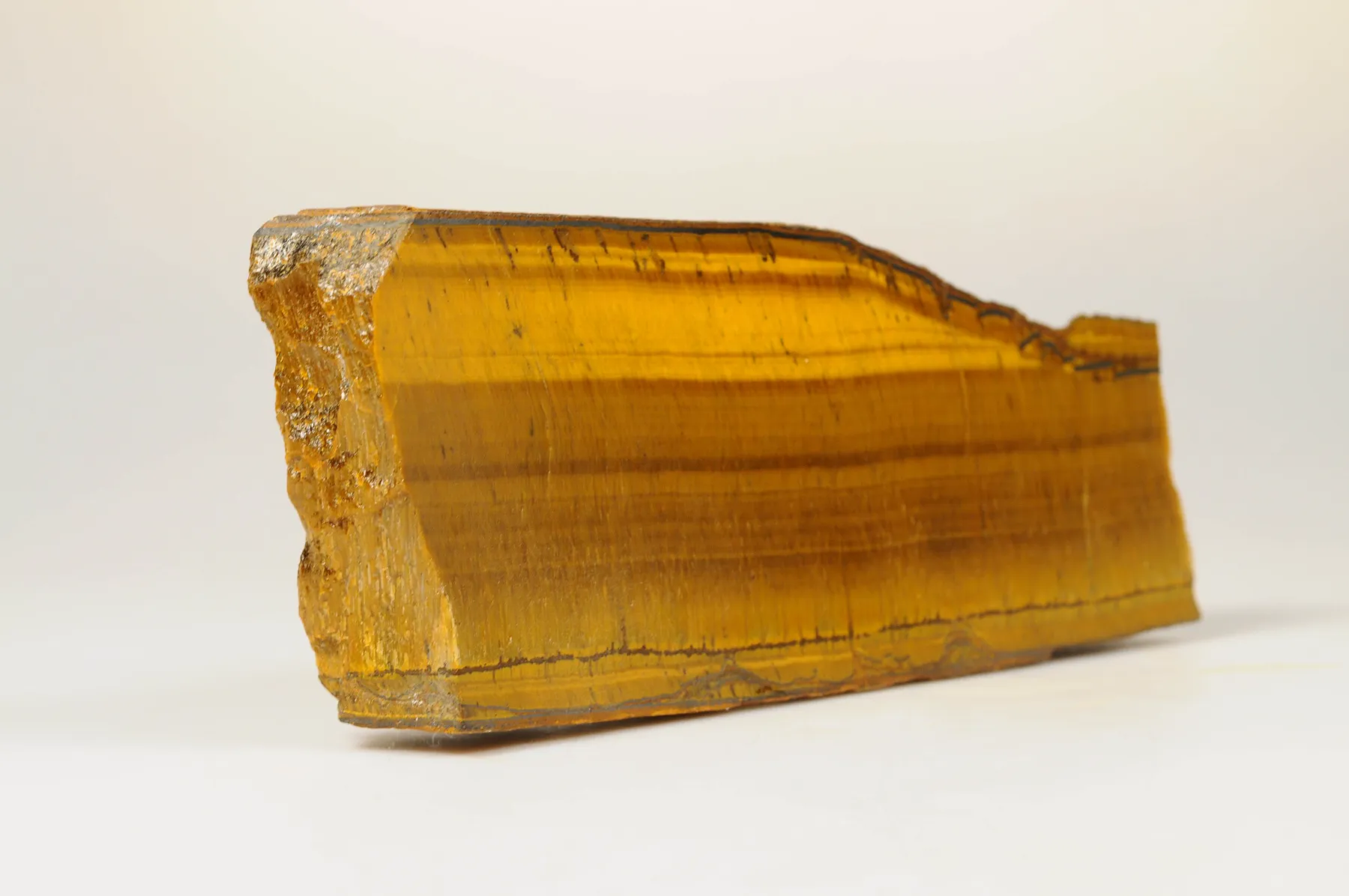 L'Oeil-de-tigre tient son nom de sa couleur jaune-brun. Il est issu d'un autre minéral, la crocidolite, qui a été silicifiée, c'est-à-dire que des cristaux de silice ont remplacé peu à peu les cristaux de crocidolite en gardant leur forme originelle. L'Oeil-de-tigre fait donc parti des minéraux siliceux, c'est une variété de quartz.