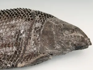 Ce spécimen est très précieux pour les collections du Muséum car il s'agit d'un holotype : cela signifie que c'est ce spécimen qui a permis de décrire l'espèce pour la toute première fois. Ce poisson fossile, appelé Lepidotes, était recouvert d’une sorte d’armure. Ses écailles étaient composées d’os et d’une couche d’émail : une protection indispensable pour survivre dans les mers jurassiques peuplées de grands reptiles prédateurs.