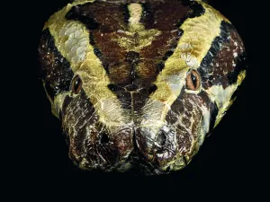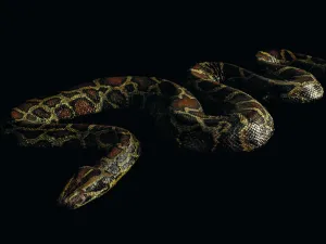 Le python moulure est un serpent constricteur : il étouffe ses proies avant de les avaler. De taille impressionnante, il peut dépasser 7 m de long pour un poids de 180 kg. Il vit notamment en Inde, Birmanie et au Vietnam. Il chasse à l’affût mammifères, oiseaux et reptiles.