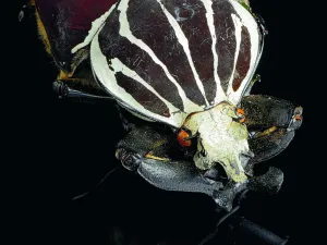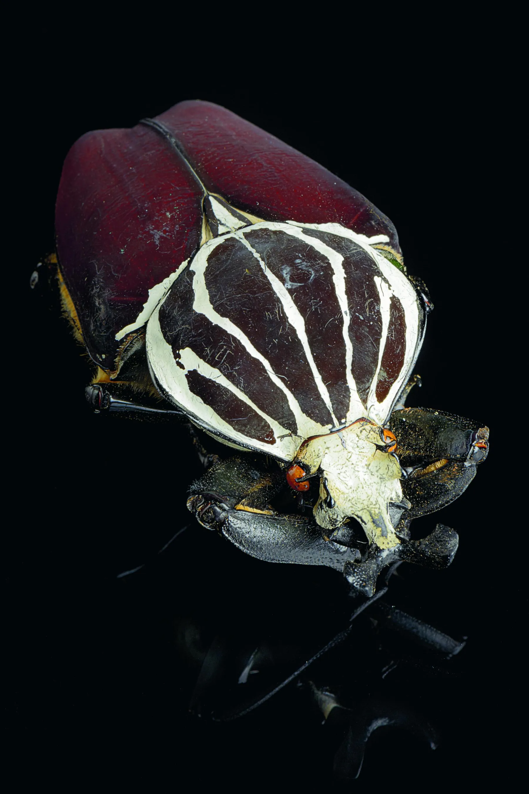 Le scarabée goliath n’est en réalité pas un scarabée, mais seulement un proche cousin. Il appartient au groupe des cétoines, comme les petites cétoines dorées qui peuplent nos jardins. Le poids du scarabée goliath peut atteindre cent grammes pour treize centimètres de long ; ce qui en fait le plus gros et le plus lourd de tous les insectes connus !