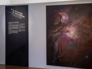 Avec une approche interactive et sensible, la scénographie propose un parcours immersif, ponctué par la présentation de vitrines de météorites, de grandes projections spectaculaires et des dispositifs innovants, dans une ambiance poétique et contemporaine.