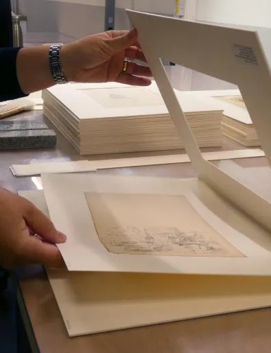 Vieux de plus de 200 ans, les papiers ont subi avec le temps des dégradations : de l’acidité à la lumière en passant par l’accumulation de poussières, autant de facteurs qui fragilisent le papier et menacent la pérennité des œuvres.