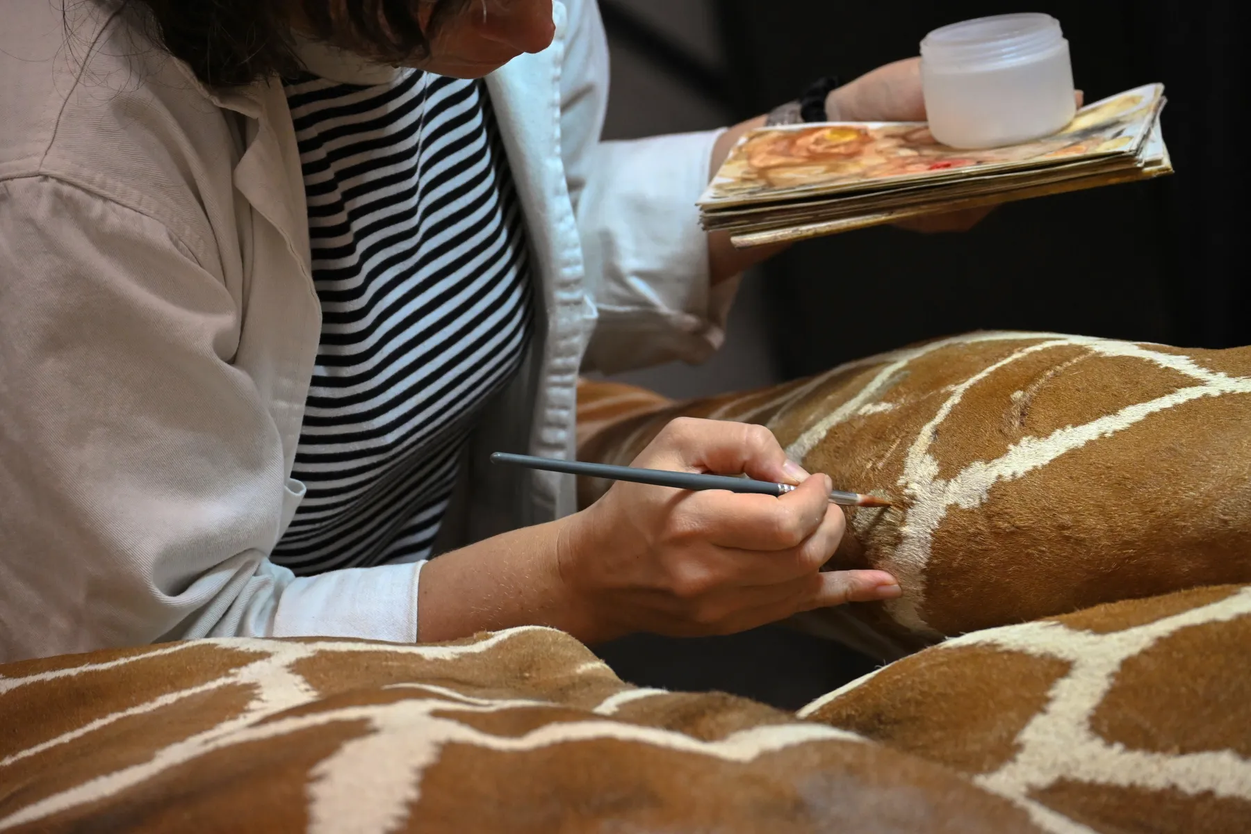 Adélie Marchal (Muséum du Havre) : Bonjour Marie, tu es venue aujourd’hui au Muséum pour restaurer l’un de ses spécimens emblématiques, notre chère girafe. Ce n’est d’ailleurs pas le premier sur lequel tu travailles. Ton métier est assez peu connu du grand public : peux-tu nous présenter un peu ton parcours ?