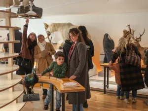 À l'intérieur des salles d'exposition, la participation des visiteurs était également sollicitée à travers une série de jeux et questions ludiques, permettant de faciliter la compréhension des informations présentées. Enfin, la salle intitulée "La forêt normande" a offert un espace de jeu aux plus petits, dans lequel ils ont pu découvrir les animaux à leur échelle en évoluant à travers tunnel, toboggans et autres structures, ou en endossant des costumes d'animaux.