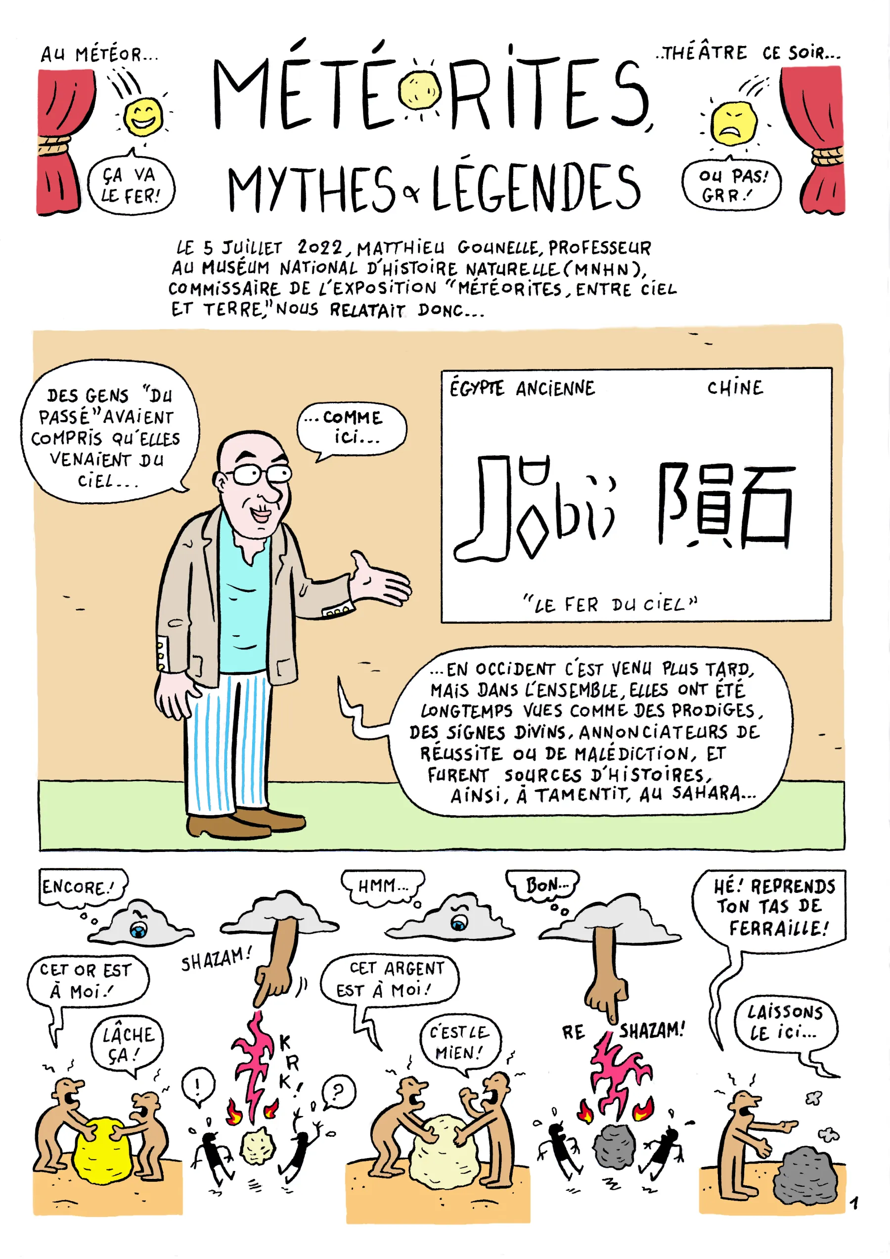 Animée par Matthieu Gounelle professeur au MNHN et dessinée par Sirou, dans le cadre de l'exposition "Météorites, entre ciel et terre", le 5 juillet 2022.